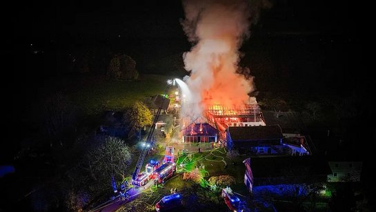 Am 1.November 2025, um 21:33 Uhr wurden wir zusammen mit 17 weiteren Feuerwehren zu einem Großbrand in Geretsberg alarmiert.