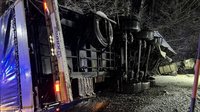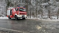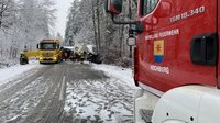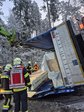 Ein mit Holz-Dreischichtplatten beladener LKW war auf der L501 auf schneeglatter Fahrbahn zuvor ins Schleudern geraten und seitlich mit der Fahrerseite gegen einen Baum geprallt. Das Fahrerhaus löste sich infolge des Aufpralls von der Zugmaschine und hing nach vorne geneigt in einer Höhe von bis zu zwei Metern ĂŒber der Fahrbahn. Der Sattelauflieger kippte im hinteren Bereich um, blieb jedoch mit der Zugmaschine verbunden und blockierte beide Fahrbahnen vollstĂ€ndig. Beim Unfall riss der Dieseltank vollstĂ€ndig ab, sodass der gesamte Kraftstoff auslief.