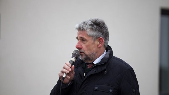 Bürgermeister Johann Reschenhofer, der in seiner Ansprache den Neubau als einen historischen Augenblick für die Gemeinde sieht und Bezirksfeuerwehrkommandant OBR Josef Kaiser wünschten allen Beteiligten eine erfolgreiche aber vor allem unfallfreie Bauzeit.